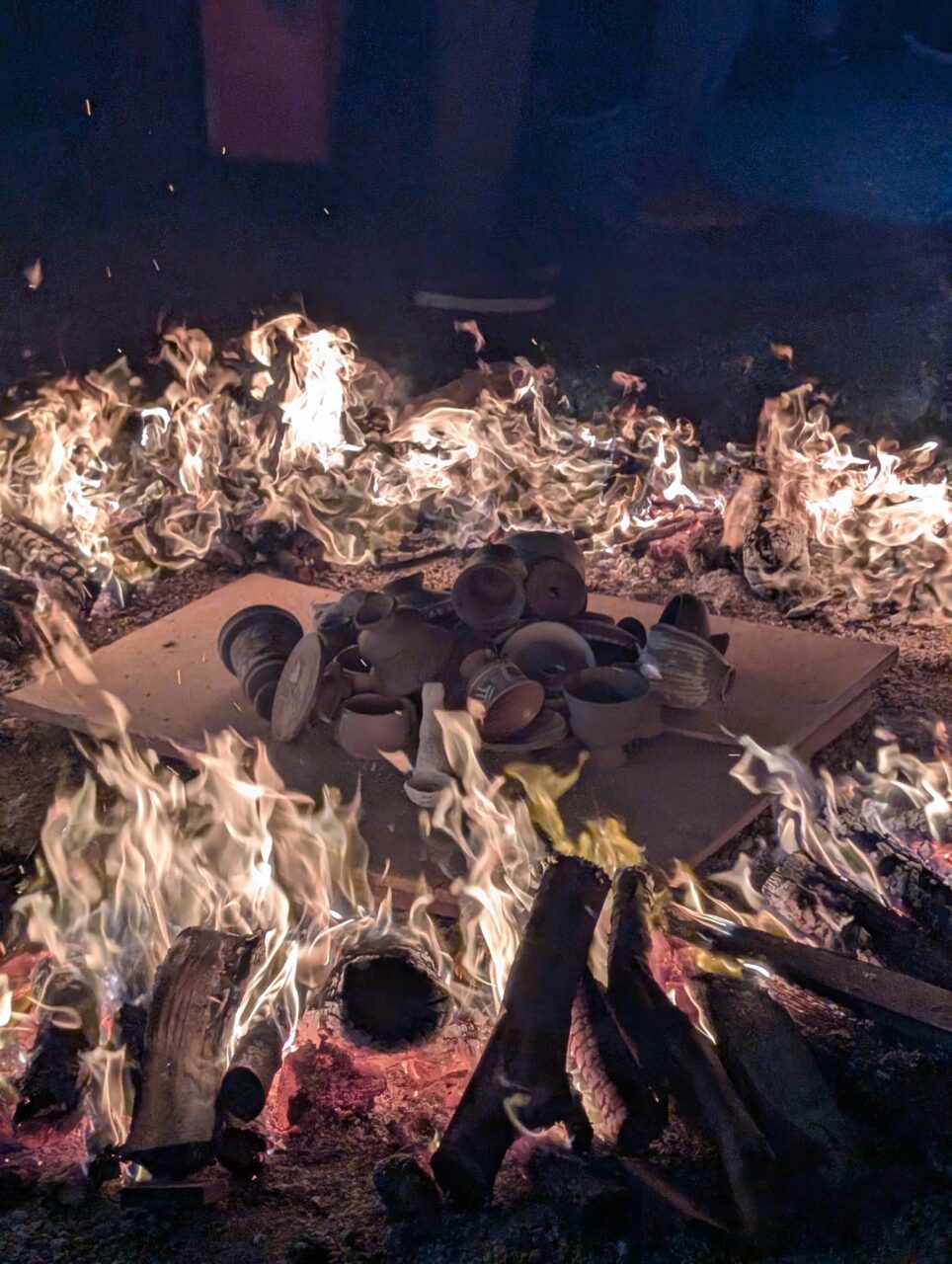 A seguire, il Fuoco diventa arte viva: le performance accendono la piazza con gesti antichi e spettacolari. I maestri ceramisti e gli artisti lavorano davanti al pubblico tra scintille, crepitii e bagliori, mostrando tecniche di cottura primitiva e la suggestiva cottura raku, dove l’argilla incandescente viene estratta dal forno e trasformata in pochi istanti in opere irripetibili. Il calore, il suono delle fiamme e il bagliore rosso delle ceramiche incandescenti creano un’atmosfera intensa e quasi ipnotica.
